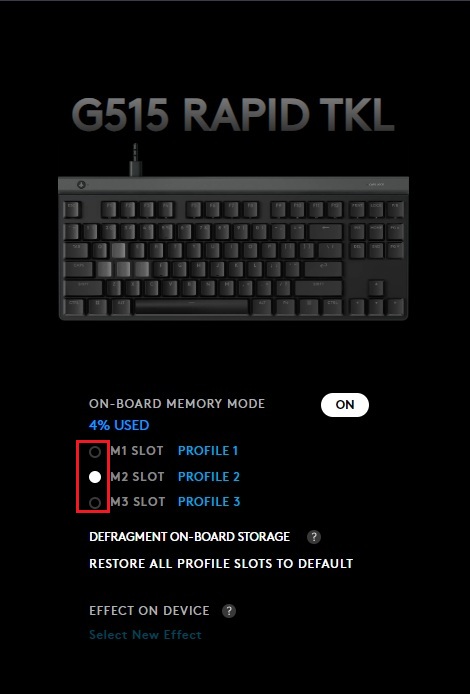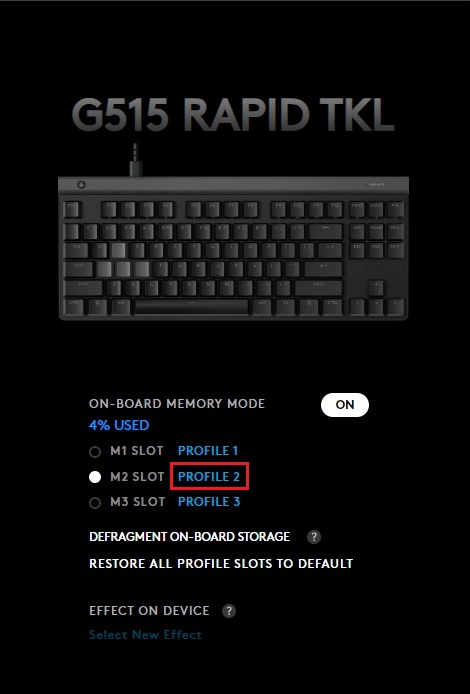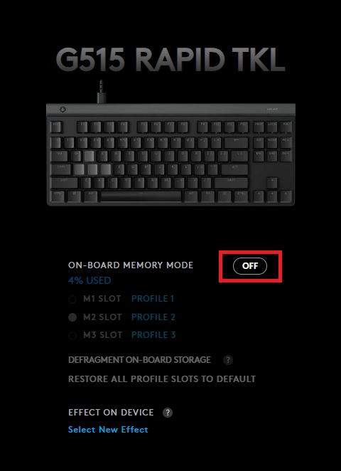 Does the G515 RAPID TKL have onboard memory for profiles?