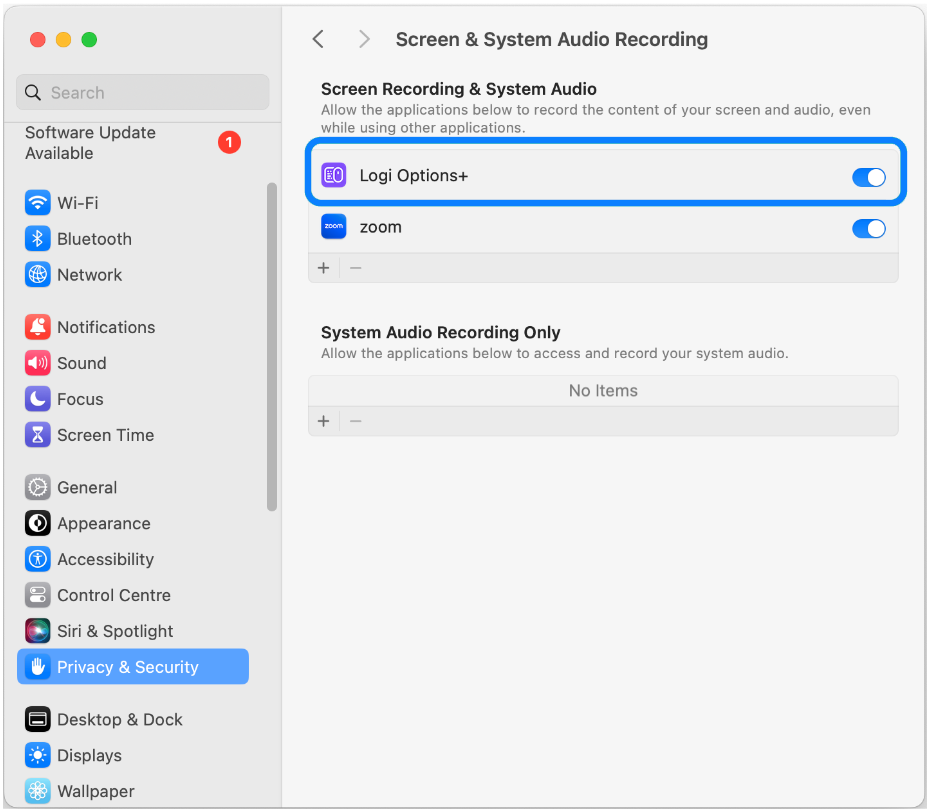 - (Mac Only) Make sure that you have granted Bluetooth, Accessibility, Input Monitoring, Screen and System Audio Recording permissions to the Logi Options+ app.
