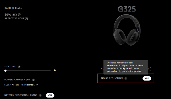 You can enable noise reduction on the Microphone tab in G HUB for your G325 headset. Here’s how: