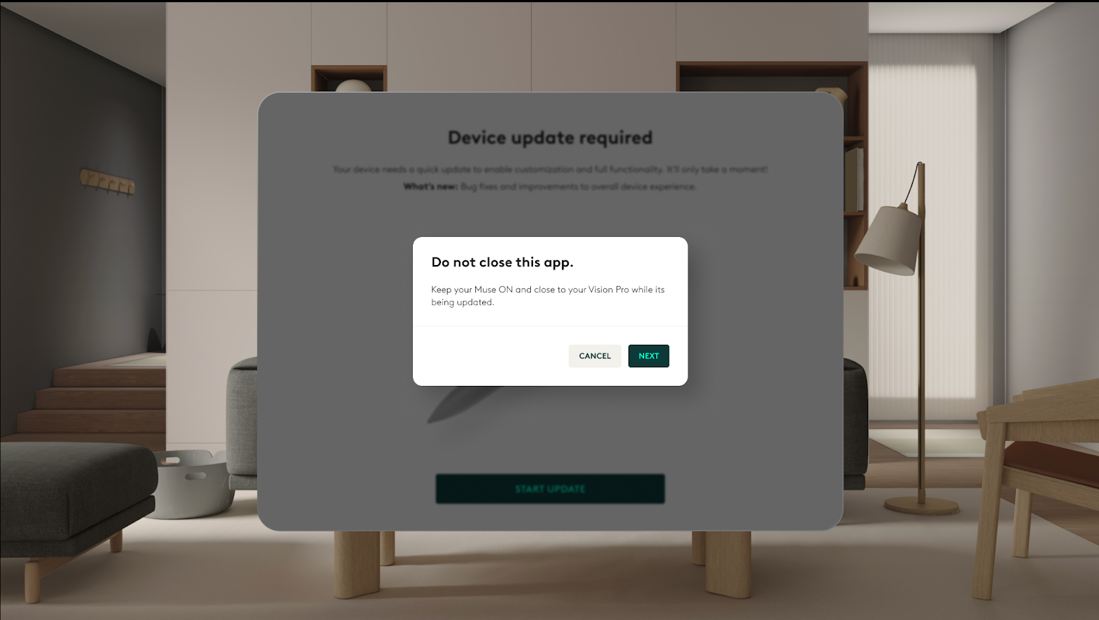La mise à jour du micrologiciel prend généralement moins d’une minute. Gardez Muse allumé et ne quittez pas l’application tant que le processus n’est pas terminé.