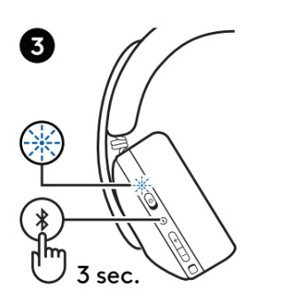 페어링 모드로 들어가려면 Bluetooth 버튼을 3초간 누르세요(LED가 파란색으로 빠르게 깜박임).