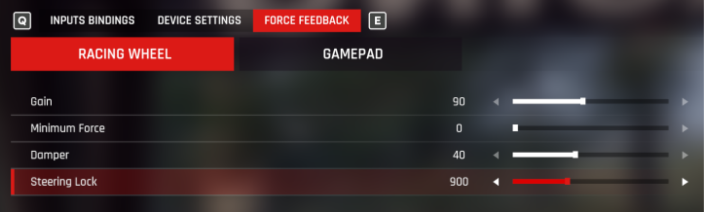 Z uwagi na to, że ustawienia w grach są sprawą subiektywną, poniższe sugestie mają na celu pomóc w określeniu ustawień, które poprawią wrażenia podczas gry. Tam, gdzie to ważne, zamieściliśmy widok ustawień kierownicy, a także ustawienia w grze. Przy wszystkich ustawieniach zakłada się, że siła kierownicy ustawiona jest na 8 Nm – ustawienia przepustnicy możesz zmniejszyć, jeśli używasz kierownicy przy mniejszej sile. Eksperymentuj z własnymi ustawieniami, aby dopasować je do swoich preferencji.