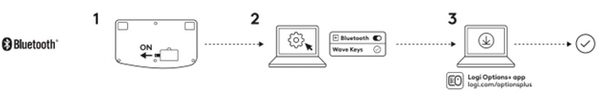 Du kan ansluta Wave Keys till din enhet via antingen Bluetooth eller Logi Bolt-mottagaren.