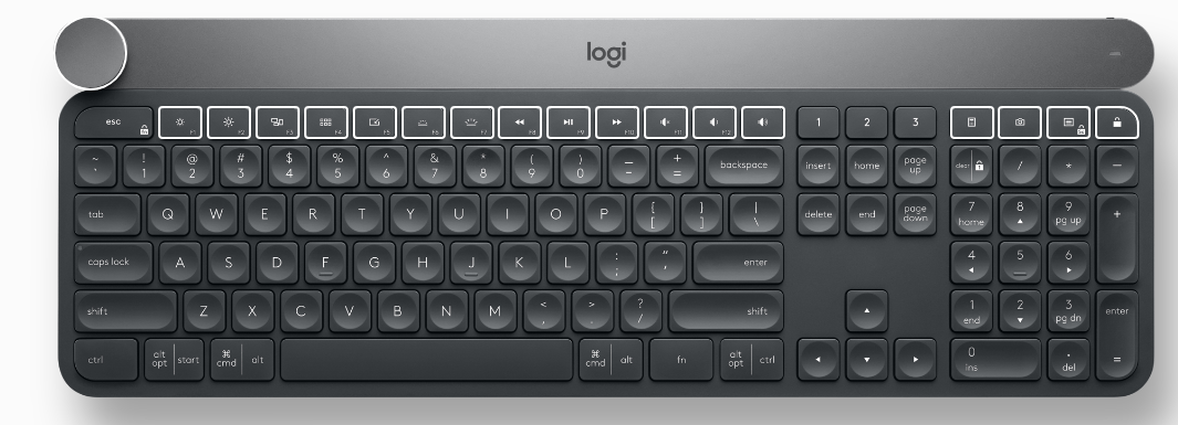 คุณสามารถปรับแต่งปุ่ม F ที่อยู่ด้านบนสุดของคีย์บอร์ด Craft ได้ด้วยแอป Logi Options+