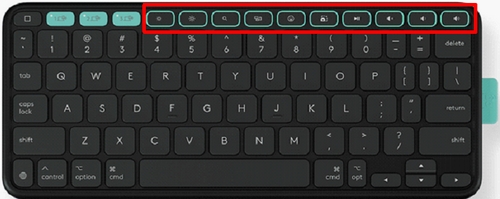 Flip Folio, iPadOS'unuza Logi Options+ Mobile uygulamasını yüklediğinizde özelleştirilebilen bir üst sıra tuş içerir. Yalnızca vurgulanan tuşlar (gösteriliyor) Logi Options+ Mobile uygulaması kullanılarak kişiselleştirilebilir: